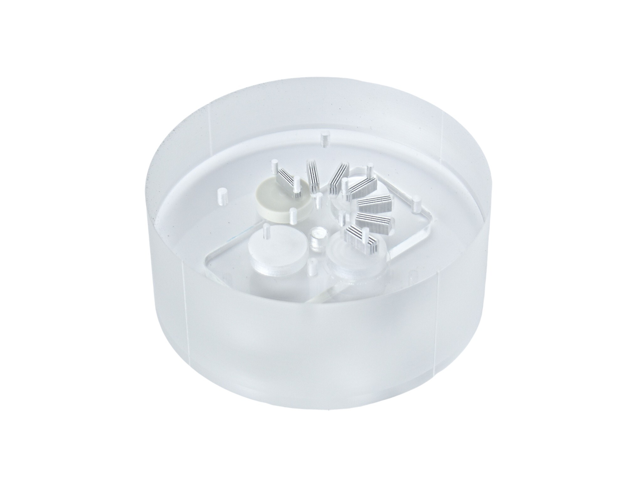 W warstwie do oceny zniekształceń geometrycznych obrazu znajdują się 4 pręty o wysokości 10mm i średnicy 3mm rozmieszczonych na planie kwadratu o boku 40mm. Dodatkowo wewnątrz znajduje się 9 otworów o wysokości 10mm i średnicy 2mm na planie krzyża w odległościach co 10mm.